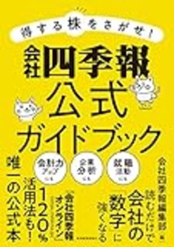 それは、 得する株をさがせ! 会社四季報公式ガイドブック です。 サクッと内容紹介 株式投資に!取引先調査に!マーケティングに!就活に!【会社情報と株式投資のバイブル『会社四季報』を使い倒す唯一の公式本】『会社四季報』は、80年余り続く企業情報誌です…